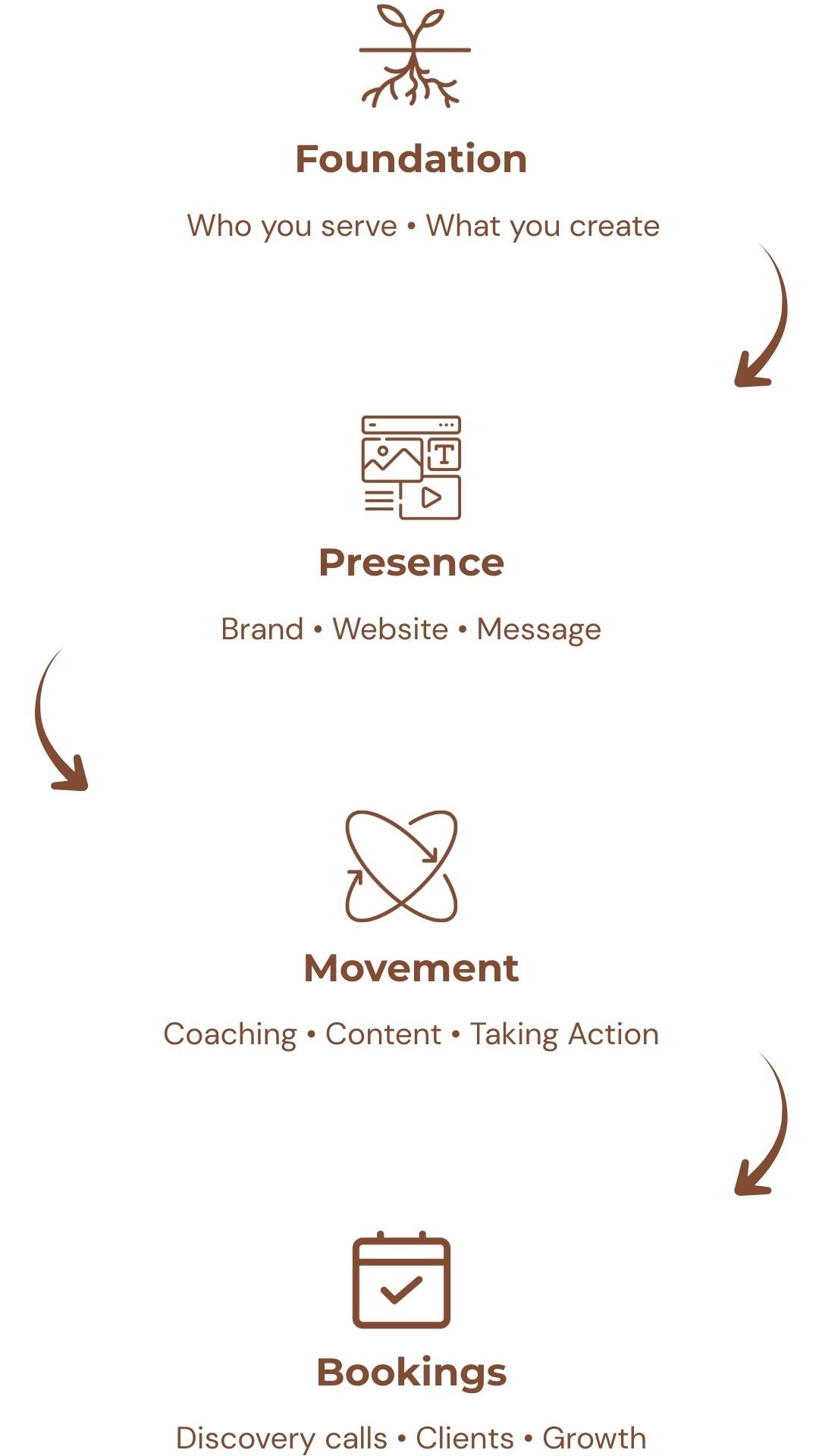 Most providers give you pieces. A bit of branding, a website, or a few coaching sessions. I guide you through three connected phases that give your business a solid foundation, a brand and website, and the guidance you need. Together, they help the right people find and choose you.